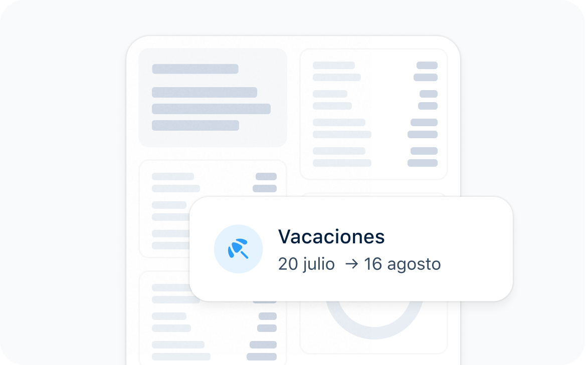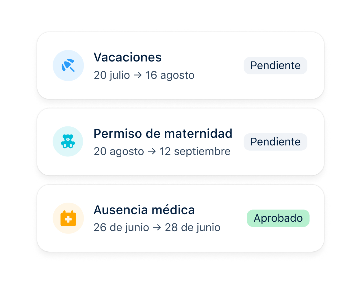 Vacaciones y ausencias Dedica tiempo a escuchar las historias de las vacaciones de tu equipo, no a aprobar sus permisos.