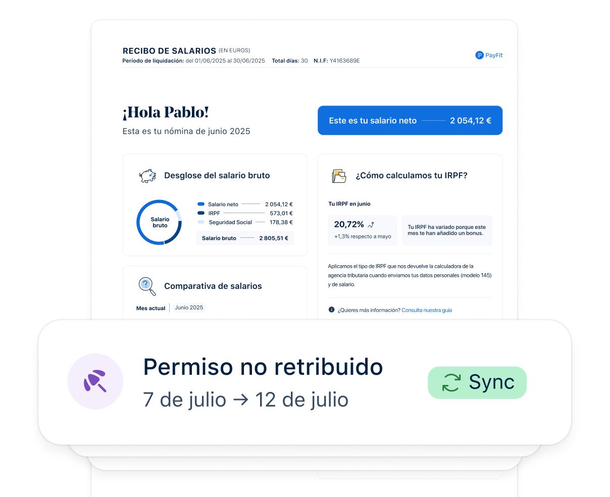 Una vez validado, nuestro software de gestión de vacaciones y ausencias actualiza la nómina automáticamente. Cero errores, cero olvidos.