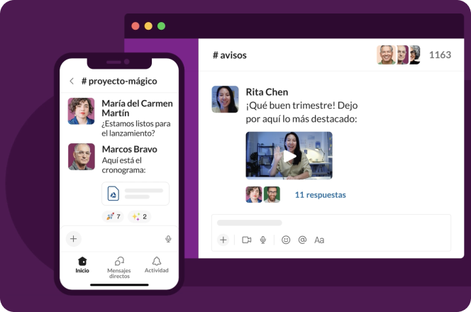 ✓ Organiza conversaciones por canales y simplifica la coordinación