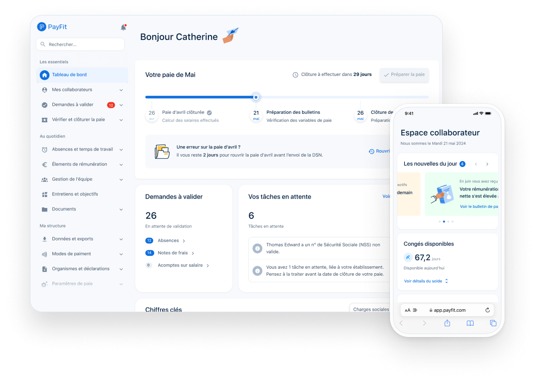 PayFit génère vos bulletins de paie et votre DSN, calcule et verse vos cotisations sociales. On vous rappelle même vos échéances de paiement. Ça vous fera un post-it de moins !